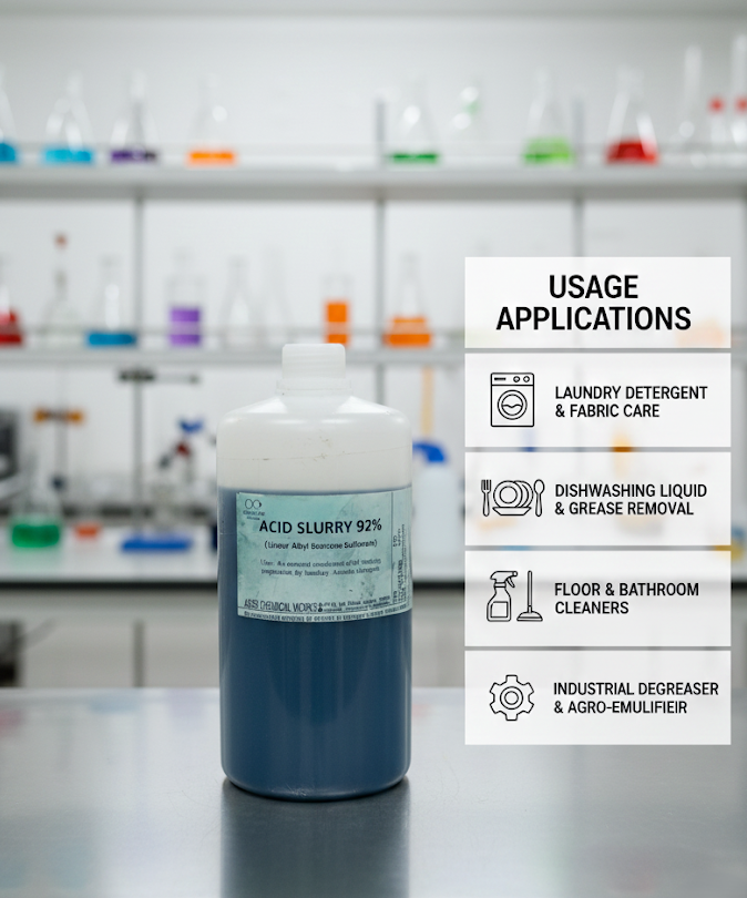 Acid slurry is a highly active substance with a low salt concentration that is easily miscible with water. The acid slurry is also often employed in a variety of compositions. The acid slurry is commonly used in the production of synthetic laundry detergent powders and liquids.