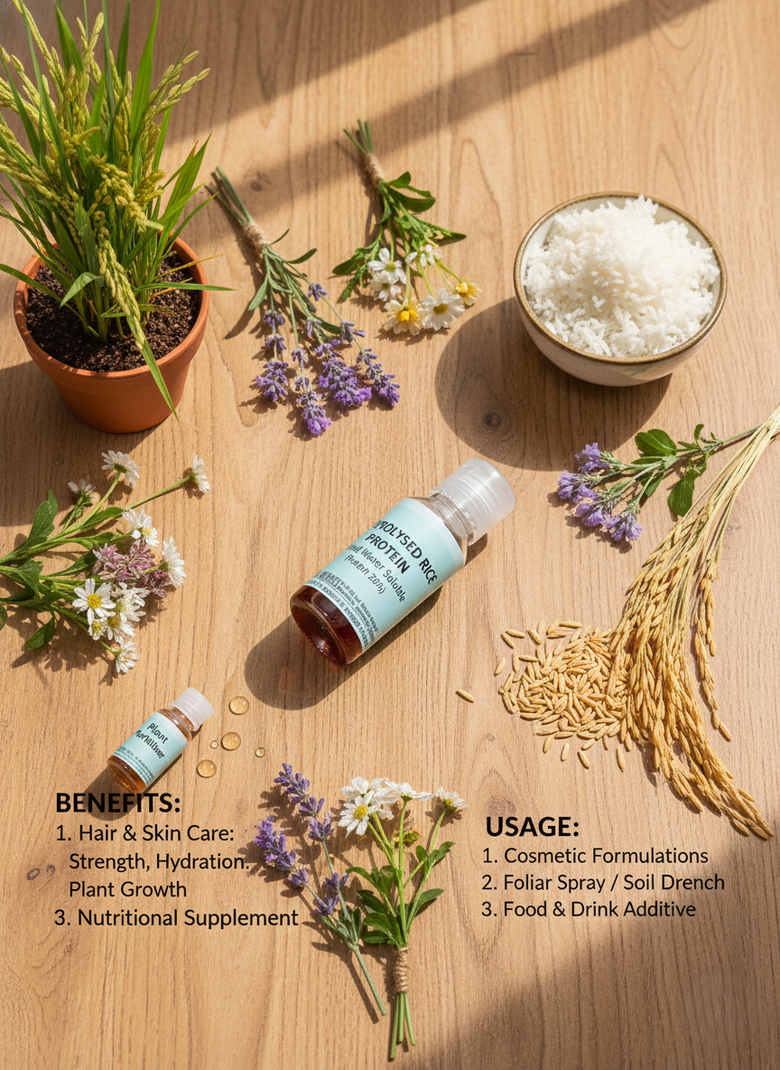 - Hydrolysis of rice renders the protein content small enough to penetrate deeper into the skin and hair and show better results.