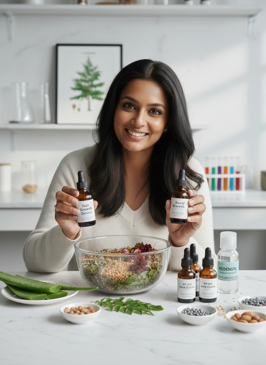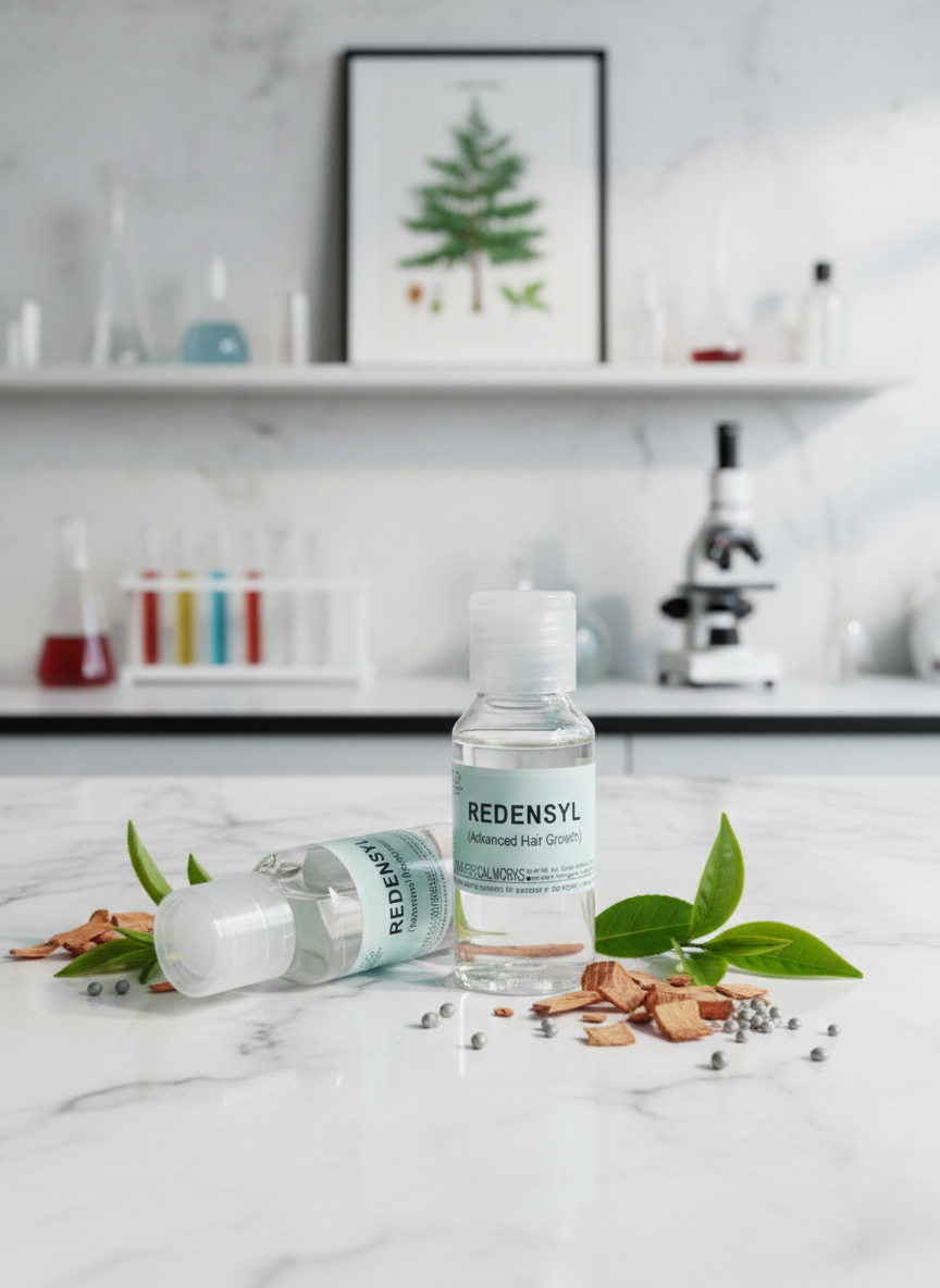 - Hair Serum: Mix 3% Redensyl with aloe vera gel and apply to scalp daily