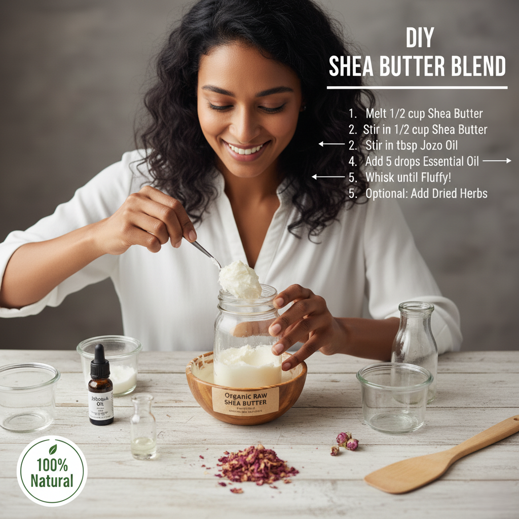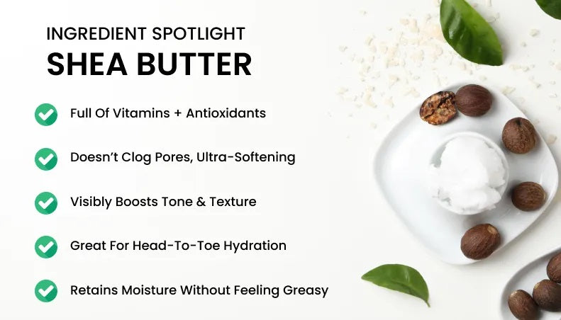 - Our pure shea butter infuses your parched skin and hair monumentally with moisture and antioxidants.