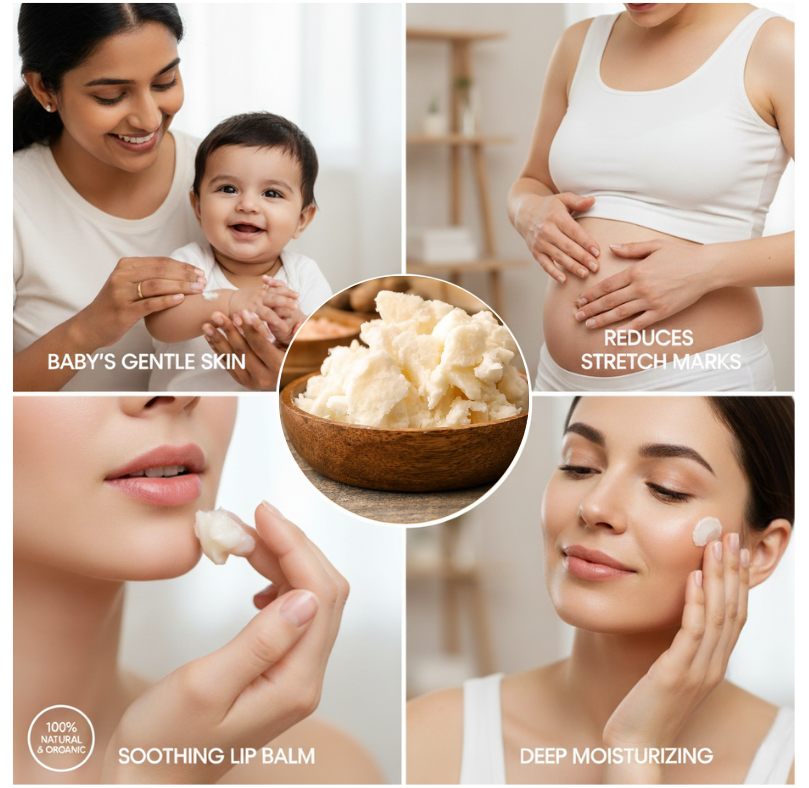 It is a fatty substance extracted from the nuts of the shea tree and acts as a fountain of youth that keeps you healthy in and out. It is known for its use in skincare, haircare, cosmetics, pharmaceutical, and food industries.