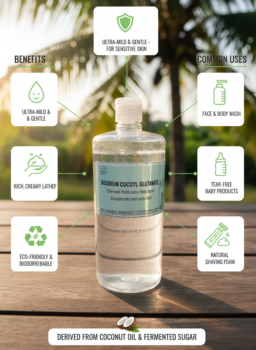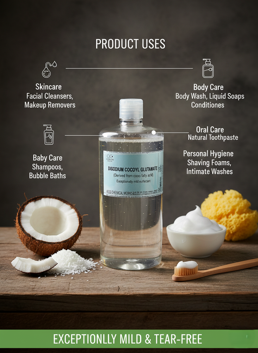 - Our sodium cocoyl glutamate is highly effective, keeping in mind it is gentle and mild to the skin.