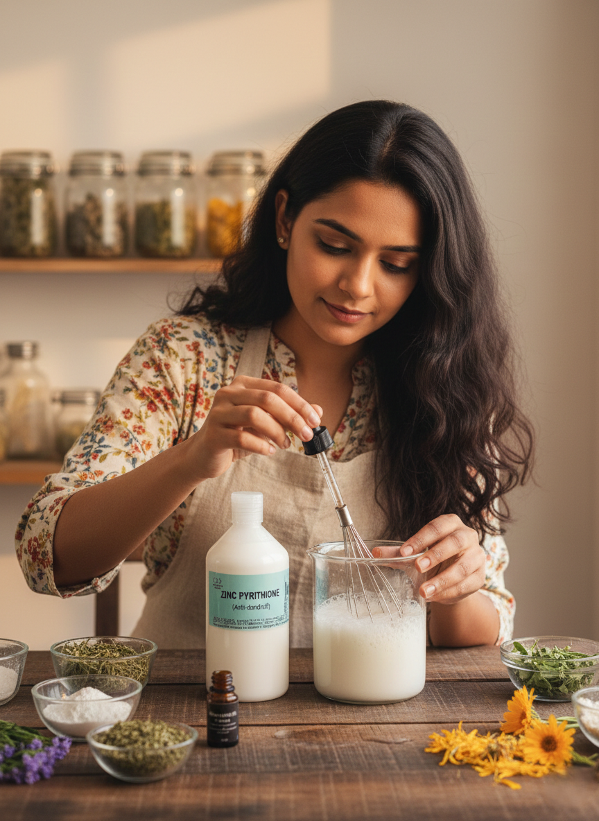 - Mix our zinc pyrithione with water in the recommended concentration and stir until a homogeneous mixture is created.